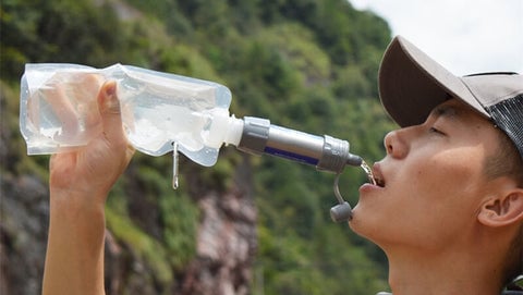 The personal water filter is made of BPA-free food-grade ABS solid plastic, and the internal sealing ring is made of high-quality silicone, which can ensure the safety of drinking water. When you need to drink safe water,can use the attached water storage bag or right-size water bottle, or you can drink directly from the water source using a camping water filter.