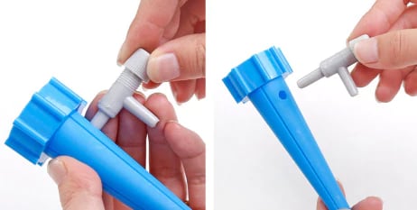 Try this product to control water flow. Insert the plastic part into the ground. Pour a bottle of water over that part. Regulate the irrigation water through the valve. It can continuously water your plants for nearly fifteen days.